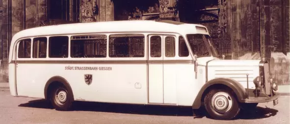 Am 1. August 1894 können Gießener Bürger erstmalig Pferdeomnibusse nutzen. Sie verkehren täglich zwischen 6 und 22 Uhr und vermitteln den Anschluss zu den wichtigsten Zügen am Gießener Bahnhof. Für eine Fahrt in die Stadt zahlt man ganze 10 Pfennige.